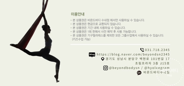 안녕하세요. 비욘드바디 수내점입니다. : )