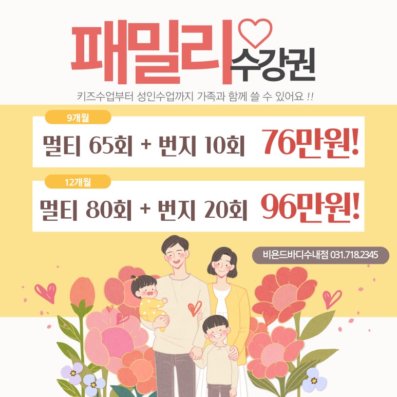 패밀리 수강권을 준비했으니 많은 관심 부탁드립니다.♥