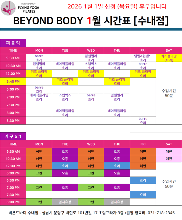 2월시간표입니다 2월16일(월)~18일(수) 설연휴입니다^^
